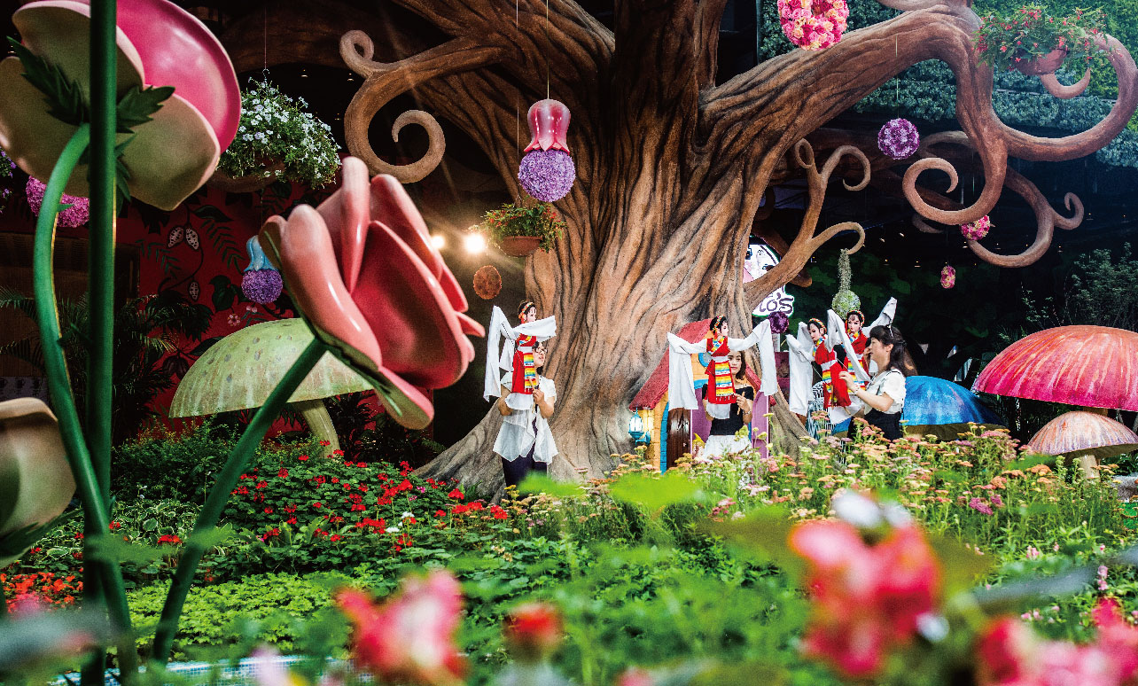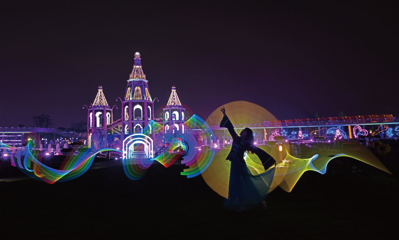 使用灯光秀、互动科技等技术,以花乐园的浪漫背景为画布,用点、线、面结合的方式,打造童话夜景空间。在其中获得到新奇浪漫的体验感受。